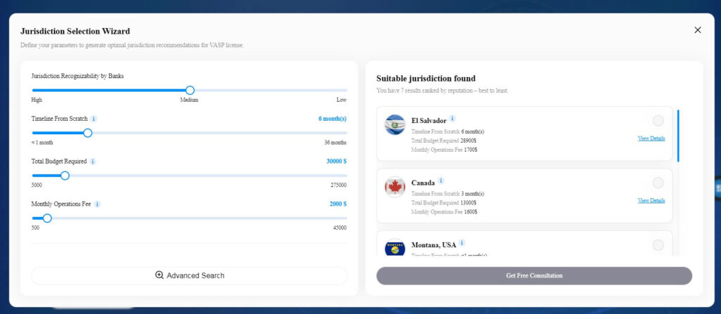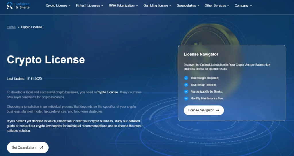 Their legal consulting services for crypto business setup start with a question most firms skip: where does this business actually belong? They built an in-house tool called Crypto License Navigator that balances: